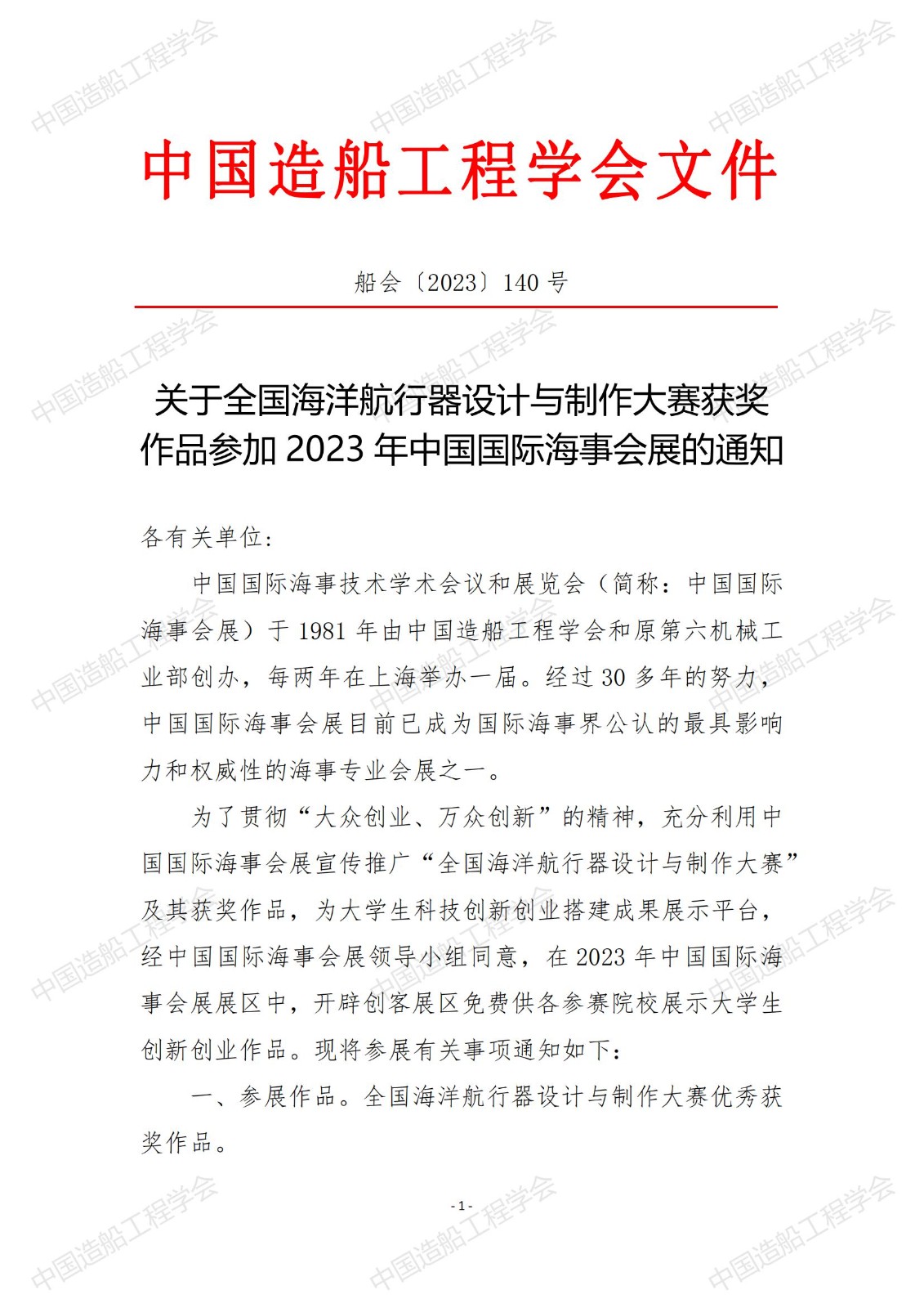 關于全國海洋航行器設計與制作大賽獲獎作品參加 2023 年中國國際海事會展的通知